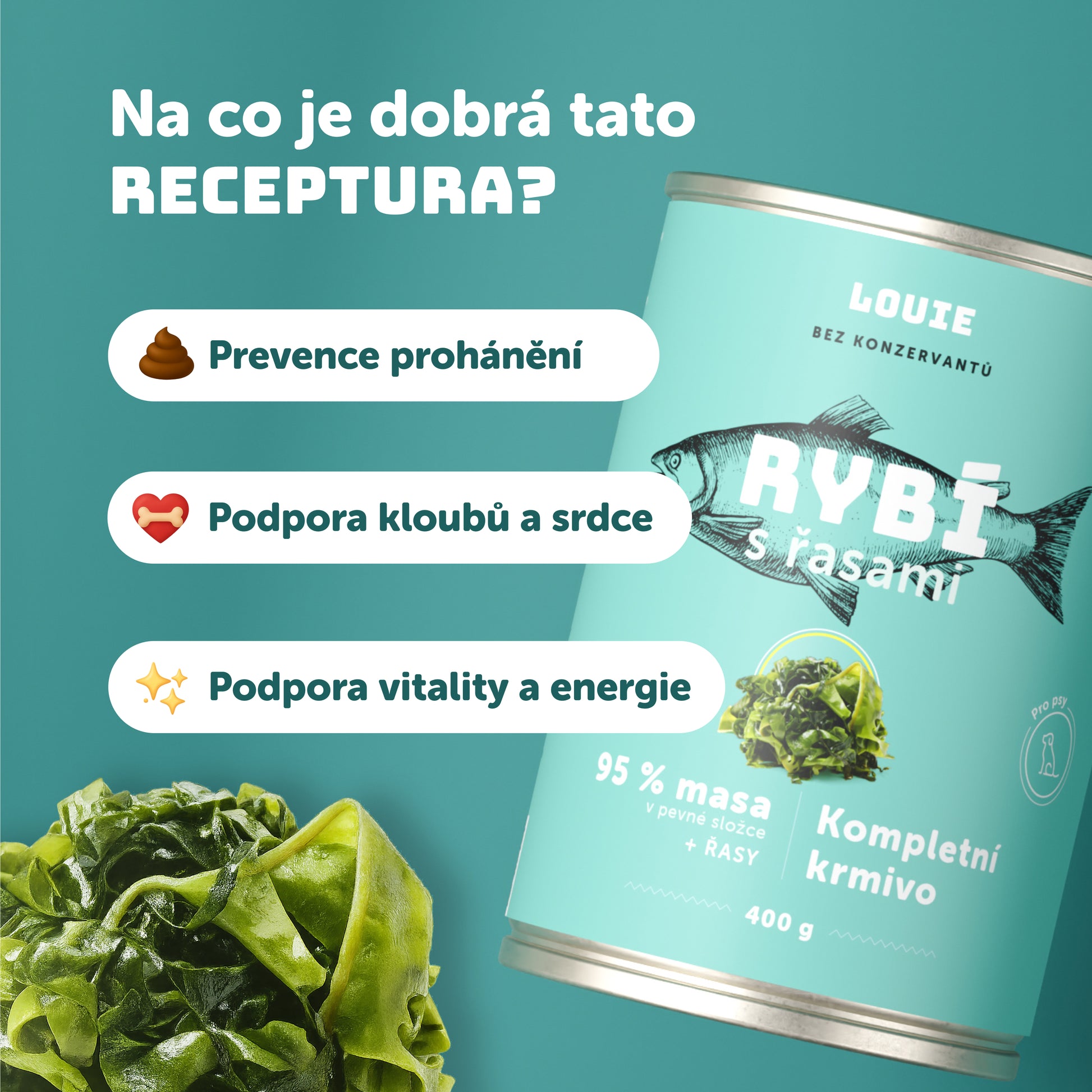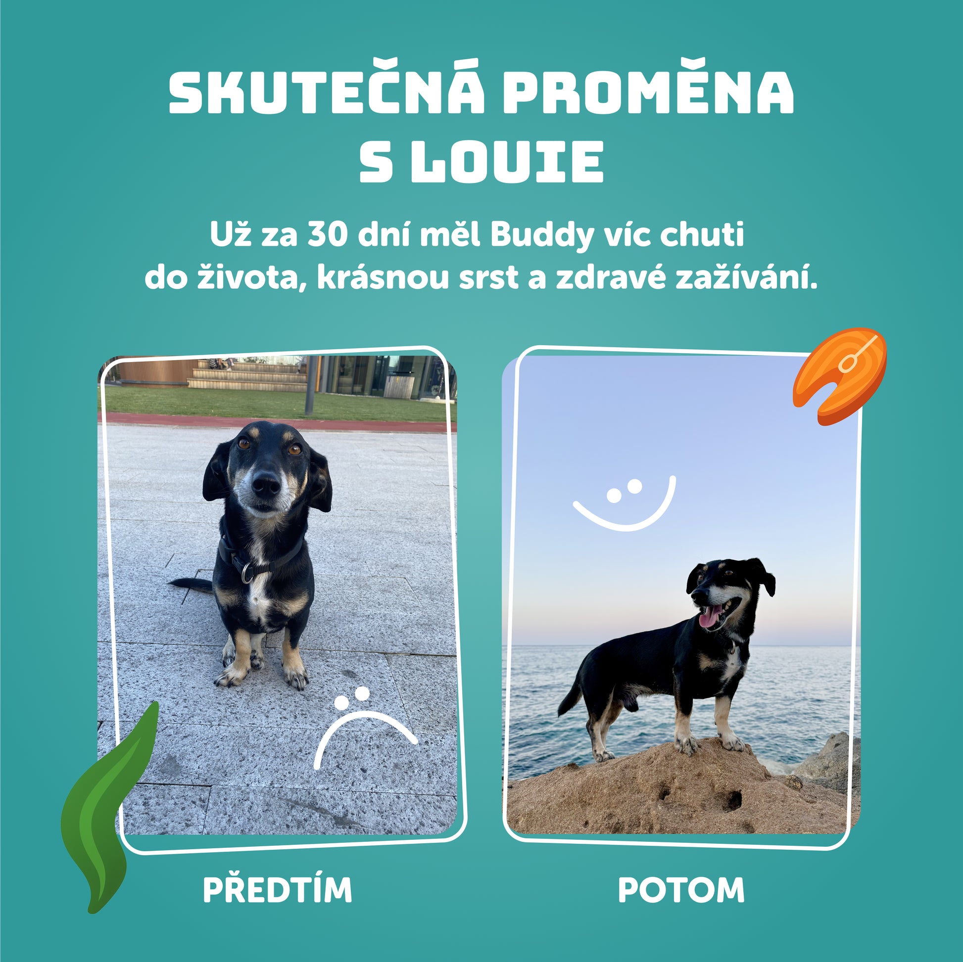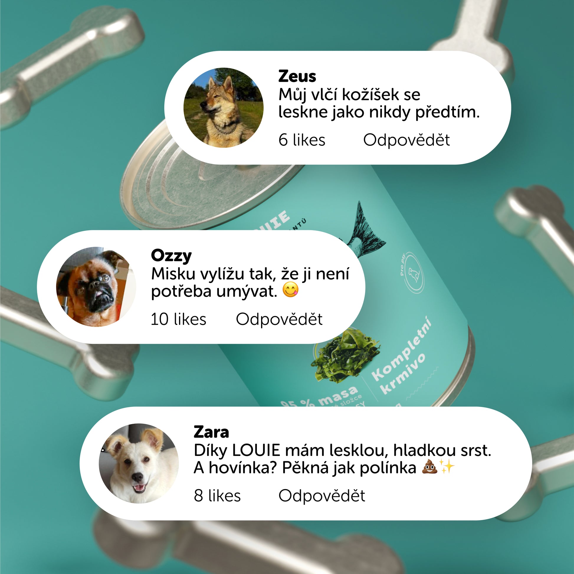 S LOUIE dávaš svému čtyřnožci vše, co potřebuje – 95 % masa v pevné složce, trochu rostlinných složek a plnou dávku živin. A ta vůně? Neodolatelná!
