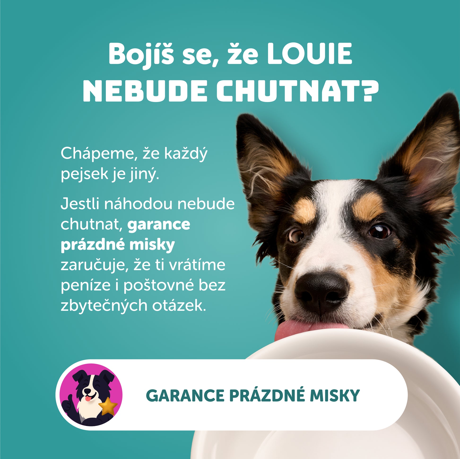 Každý pejsek má své vlastní chutě, ale konzervy LOUIE jsou připravovány z kvalitních surovin a mají přirozenou vůni i chuť, kterým většina psů neodolá. A pokud by mu konzerva opravdu nechutnala, nemusíte se bát – nabízíme Garanci prázdné misky! To znamená, že pokud pejsek krmivo odmítne, vrátíme ti peníze. Více informací najdeš zde. 😊