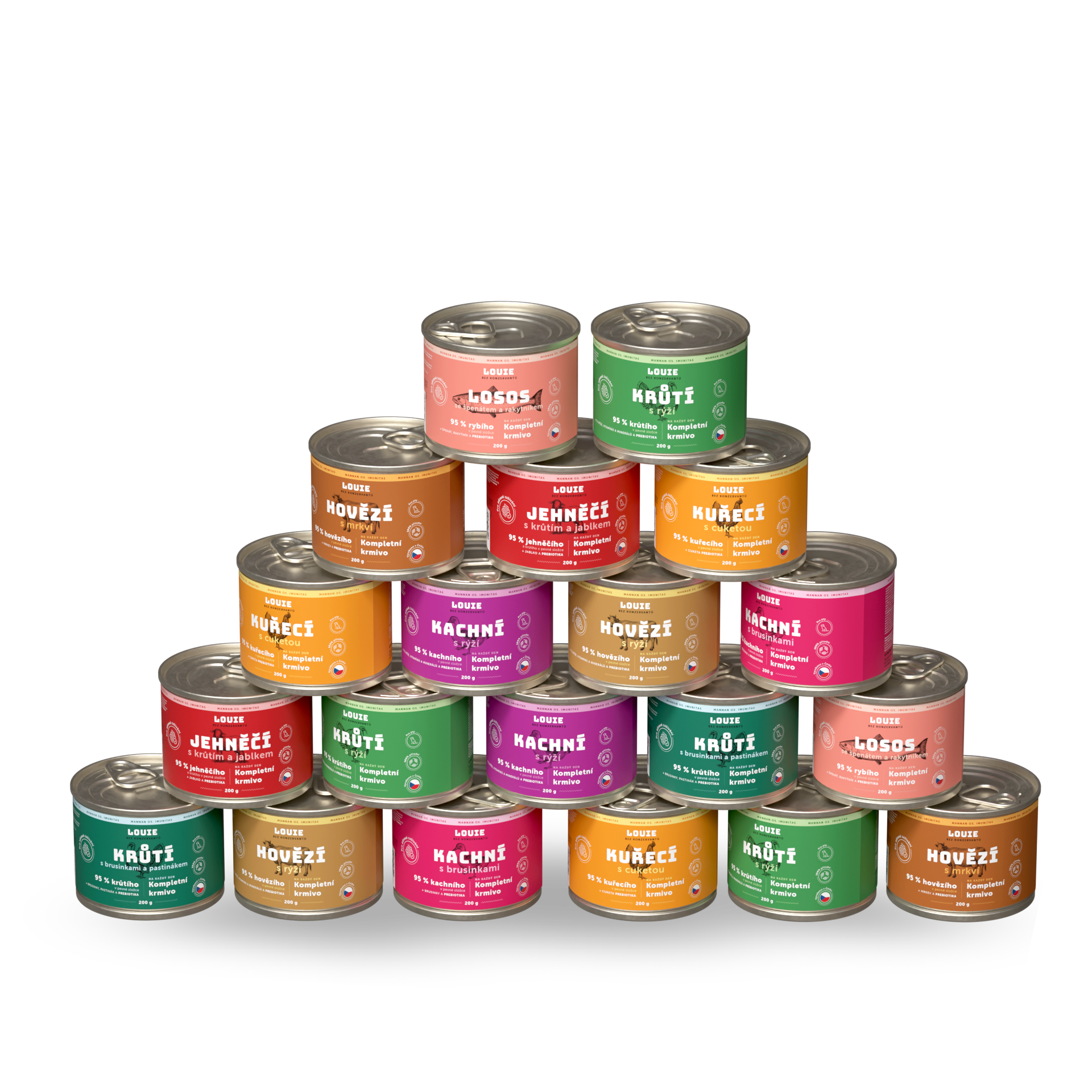 S LOUIE dávaš svému čtyřnožci vše, co potřebuje – 95 % masa v pevné složce, trochu rostlinných složek a plnou dávku živin. A ta vůně? Neodolatelná!