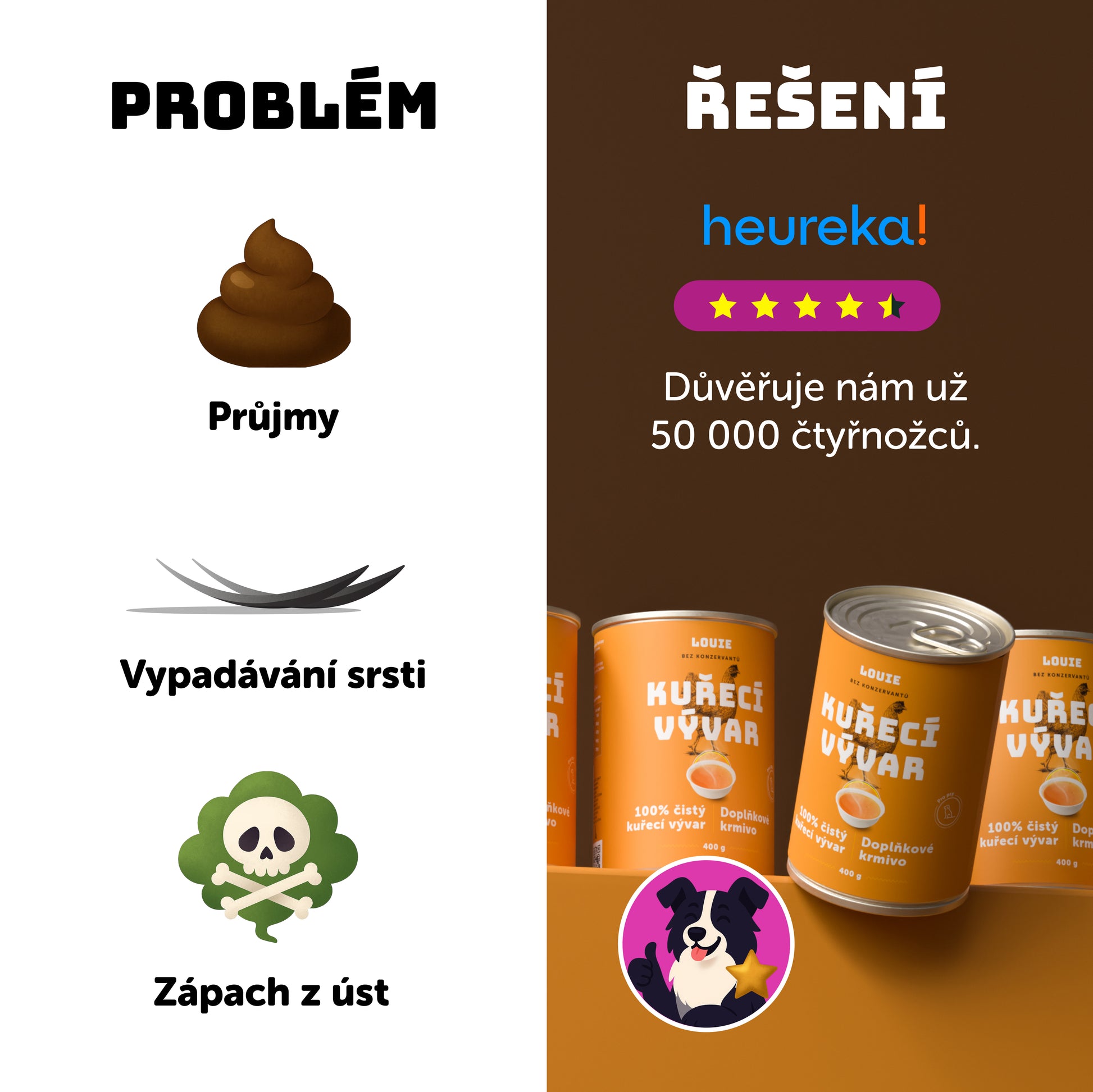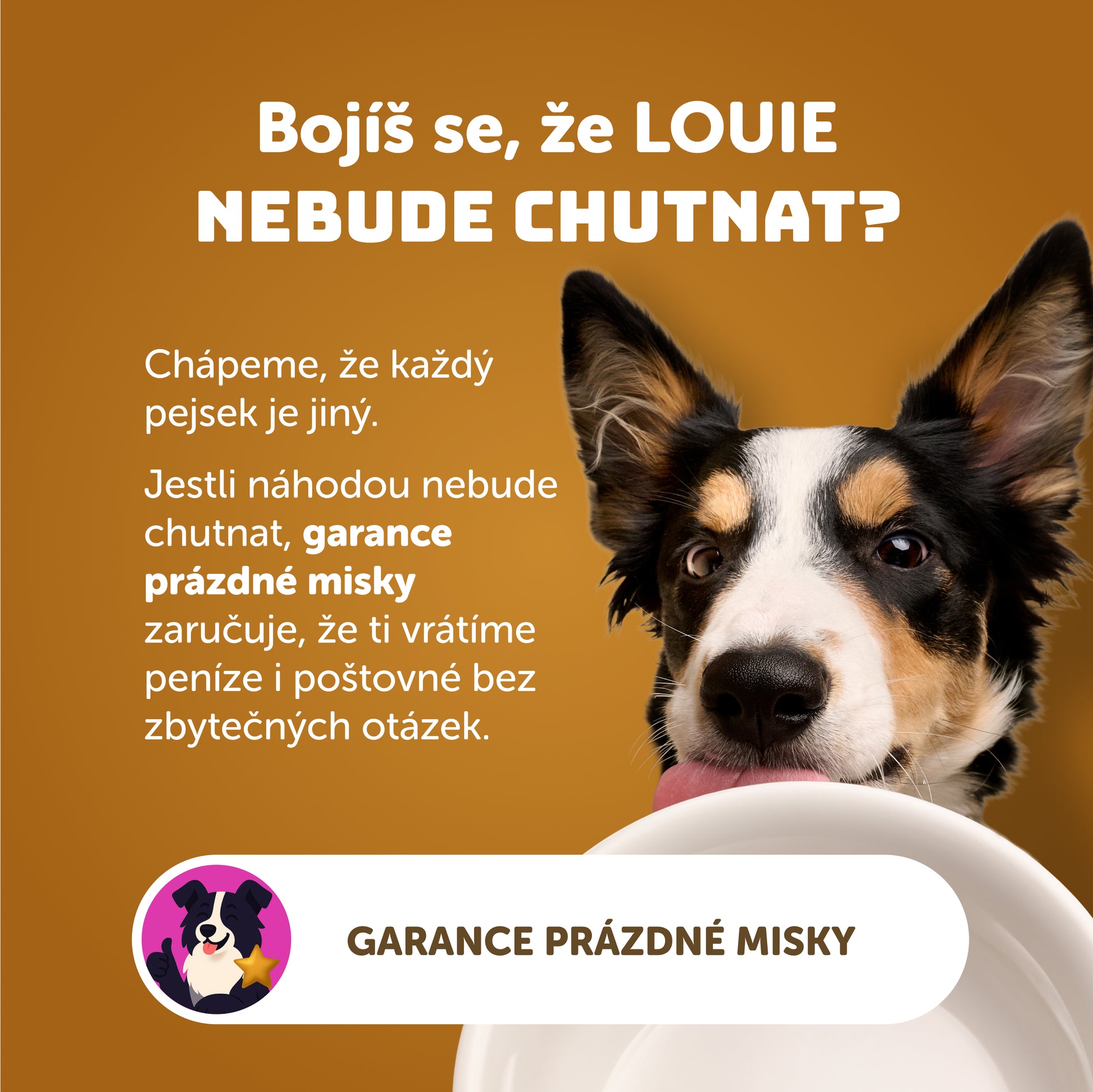 Každý pejsek má své vlastní chutě, ale konzervy LOUIE jsou připravovány z kvalitních surovin a mají přirozenou vůni i chuť, kterým většina psů neodolá. A pokud by mu konzerva opravdu nechutnala, nemusíte se bát – nabízíme Garanci prázdné misky! To znamená, že pokud pejsek krmivo odmítne, vrátíme ti peníze. Více informací najdeš zde. 😊