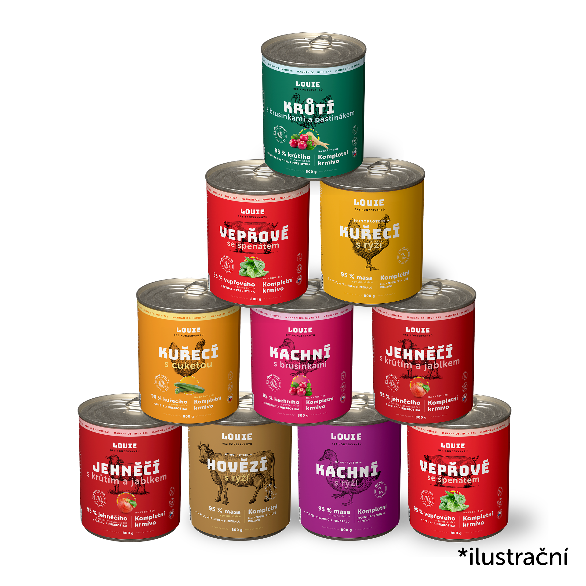 Ano, určitě! LOUIE konzervy obsahují vše, co tvůj chlupáč potřebuje pro zdravý a aktivní život. Obsahují 95 % masa v pevné složce a 5 % rostlinné složky, vitamínů a minerálů. Neobsahují žádné konzervanty, dochucovadla ani další zbytečnou chemii.