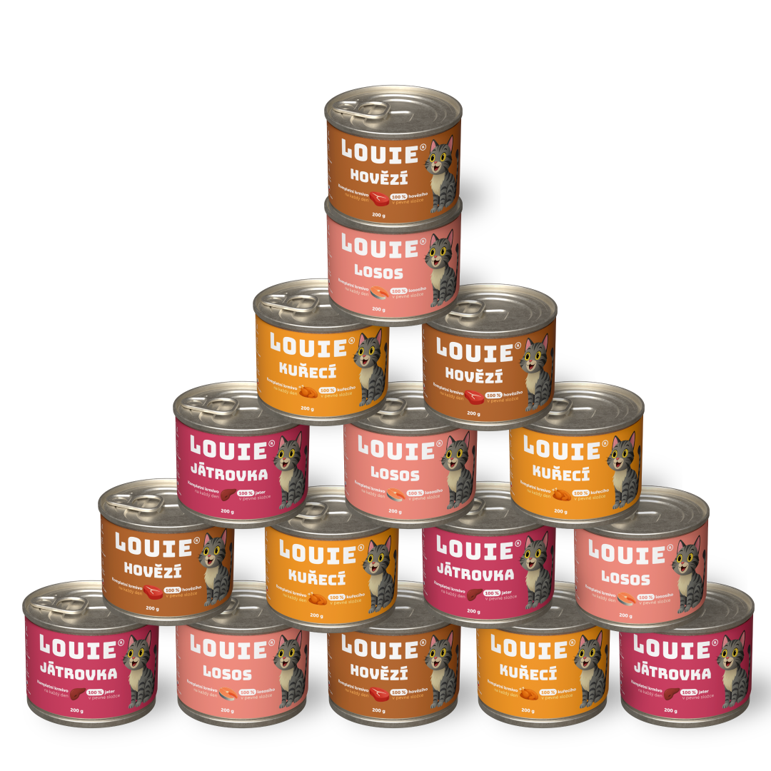 Každý pejsek má své vlastní chutě, ale konzervy LOUIE jsou připravovány z kvalitních surovin a mají přirozenou vůni i chuť, kterým většina psů neodolá. A pokud by mu konzerva opravdu nechutnala, nemusíte se bát – nabízíme Garanci prázdné misky! To znamená, že pokud pejsek krmivo odmítne, vrátíme ti peníze. Více informací najdeš zde. 😊