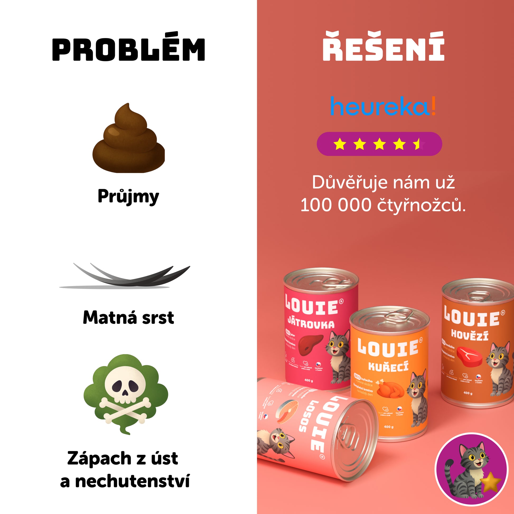 Každý pejsek má své vlastní chutě, ale konzervy LOUIE jsou připravovány z kvalitních surovin a mají přirozenou vůni i chuť, kterým většina psů neodolá. A pokud by mu konzerva opravdu nechutnala, nemusíte se bát – nabízíme Garanci prázdné misky! To znamená, že pokud pejsek krmivo odmítne, vrátíme ti peníze. Více informací najdeš zde. 😊
