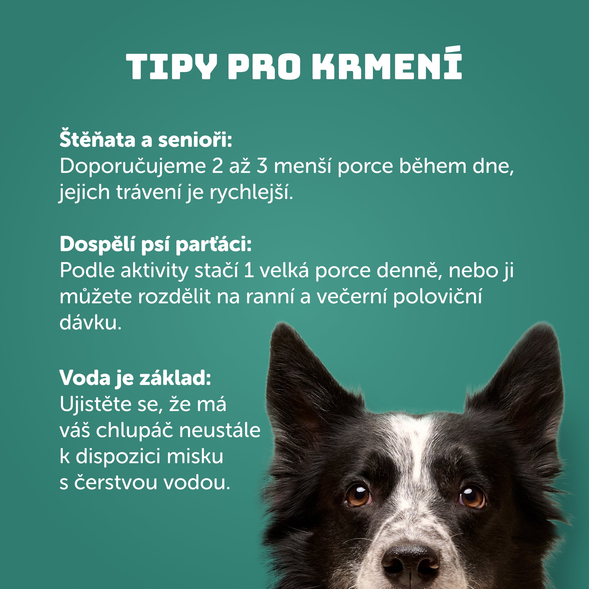 ❌ Bez konzervantů 🐶 Pro psy každého věku i plemene 🥩 95 % masa v pevné složce Bez obilnin 100 % přírodní složení Vyrobeno v Česku Kompletní krmivo