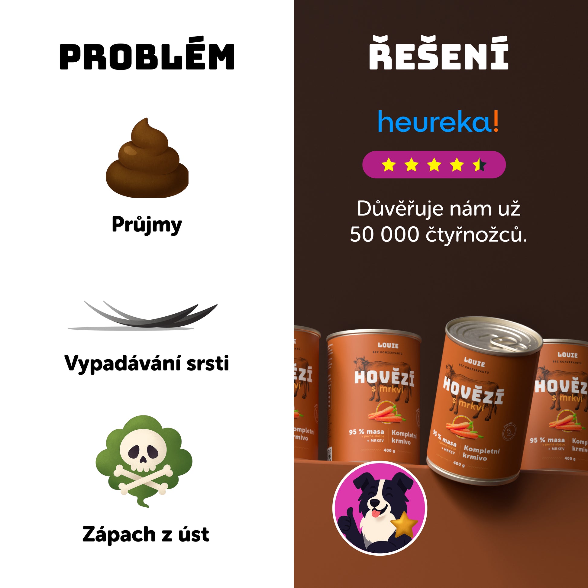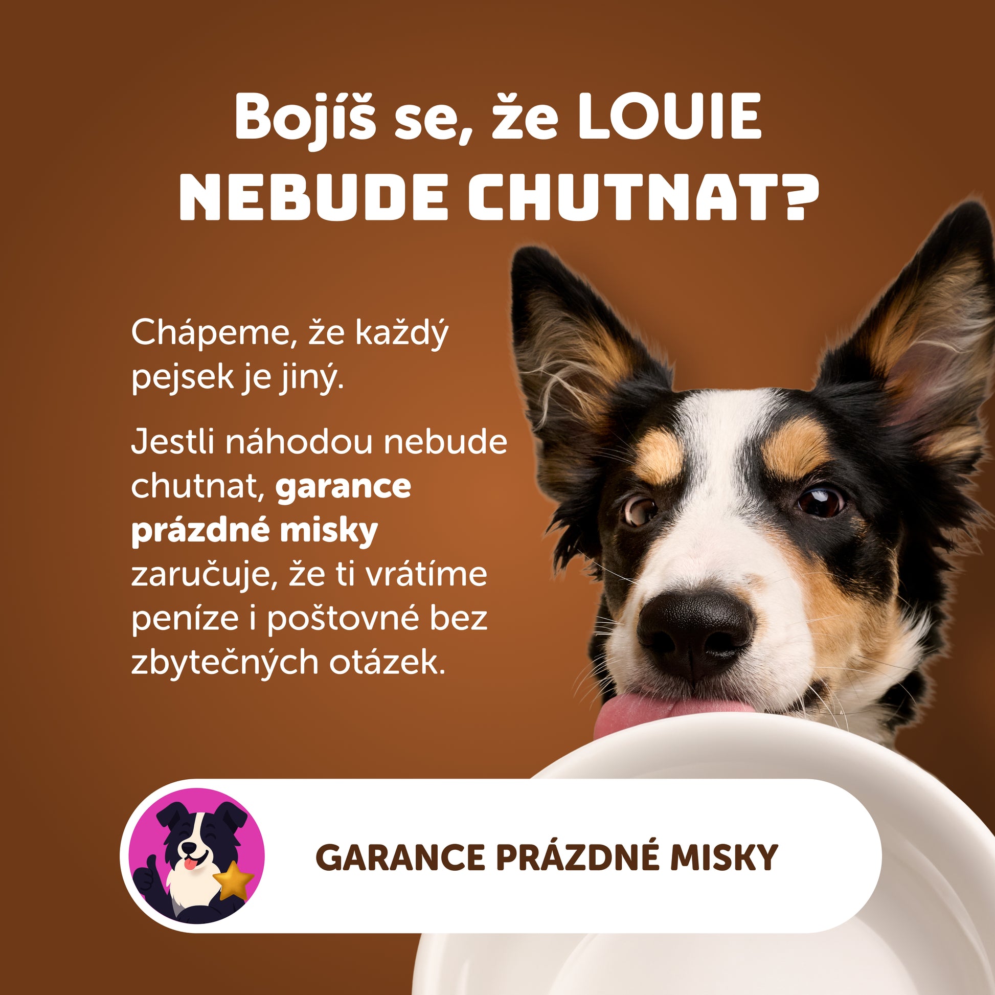 Každý pejsek má své vlastní chutě, ale konzervy LOUIE jsou připravovány z kvalitních surovin a mají přirozenou vůni i chuť, kterým většina psů neodolá. A pokud by mu konzerva opravdu nechutnala, nemusíte se bát – nabízíme Garanci prázdné misky! To znamená, že pokud pejsek krmivo odmítne, vrátíme ti peníze. Více informací najdeš zde. 😊