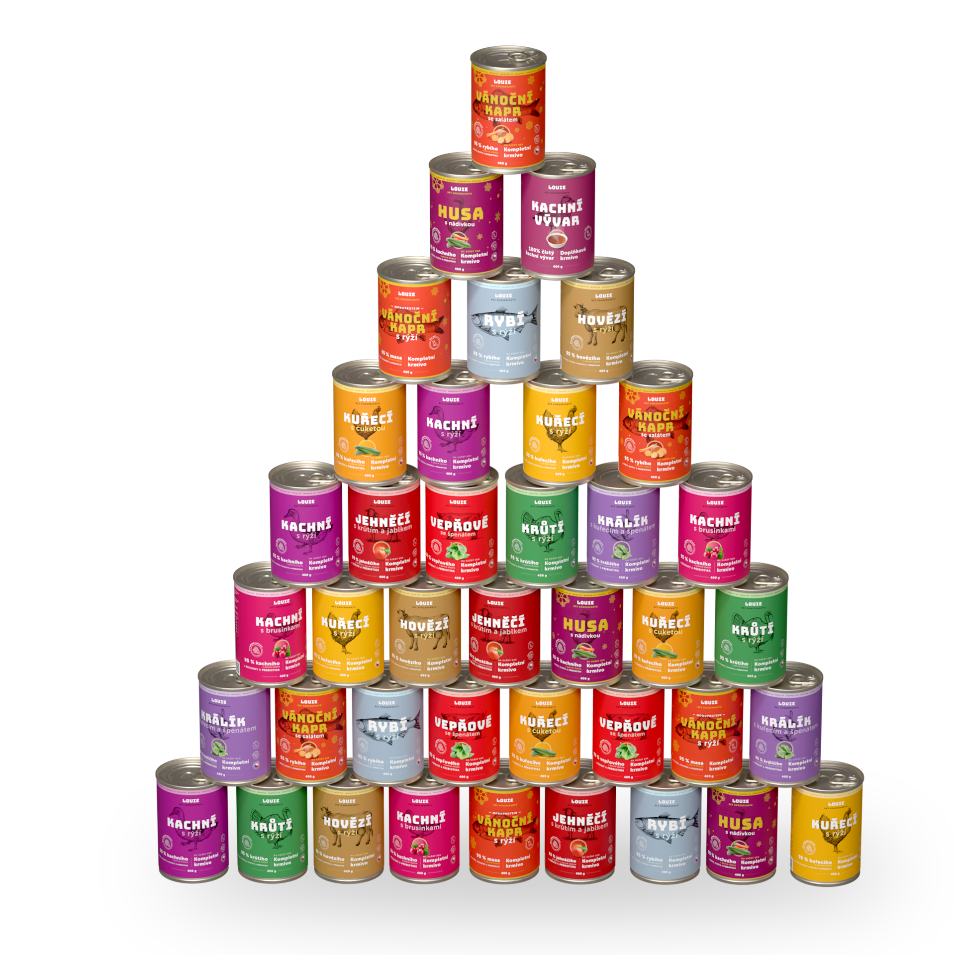 Ano, určitě! LOUIE konzervy obsahují vše, co tvůj chlupáč potřebuje pro zdravý a aktivní život. Obsahují 95 % masa v pevné složce a 5 % rostlinné složky, vitamínů a minerálů. Neobsahují žádné konzervanty, dochucovadla ani další zbytečnou chemii.