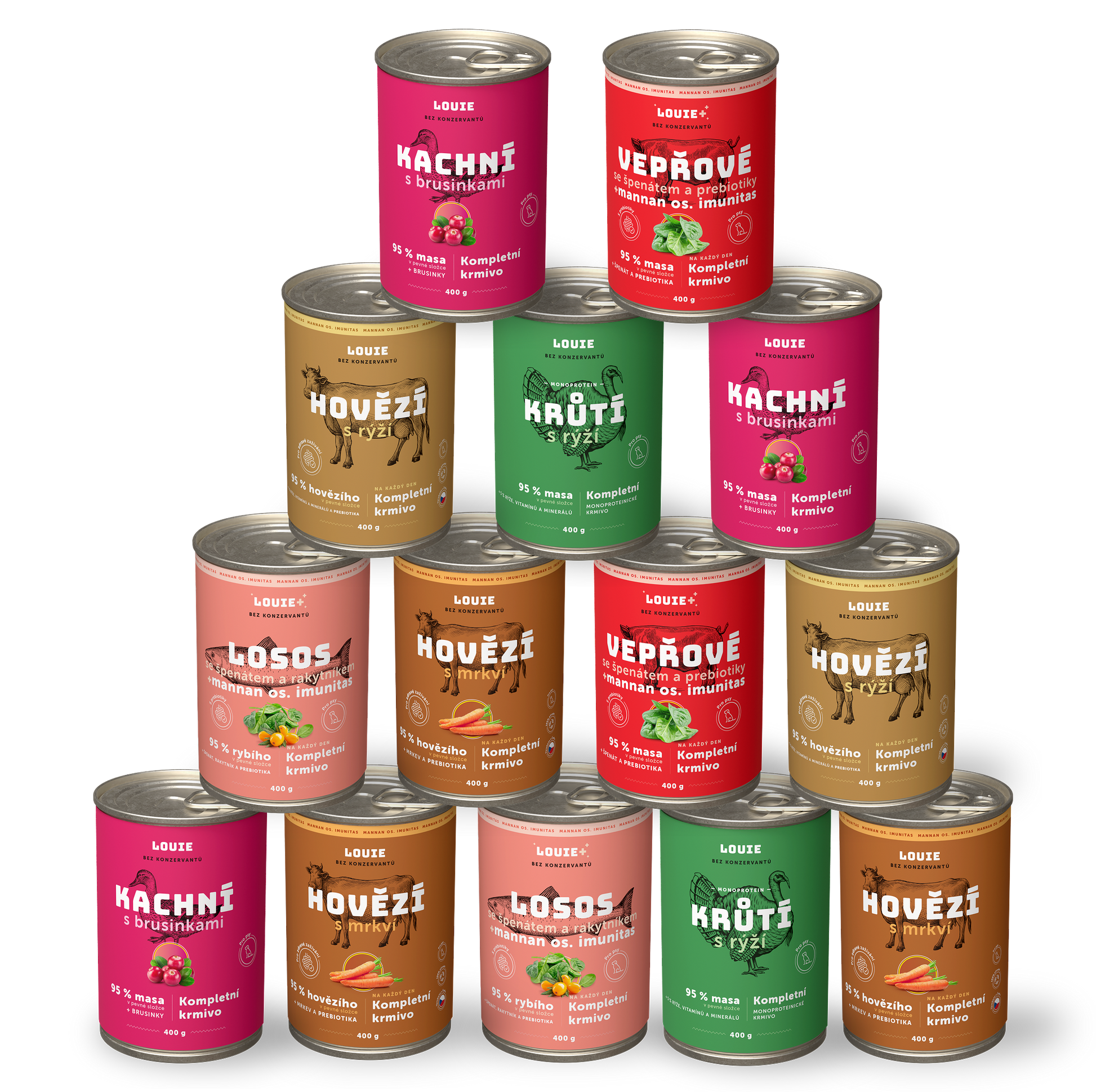 S LOUIE dávaš svému čtyřnožci vše, co potřebuje – 95 % masa v pevné složce, trochu rostlinných složek a plnou dávku živin. A ta vůně? Neodolatelná!