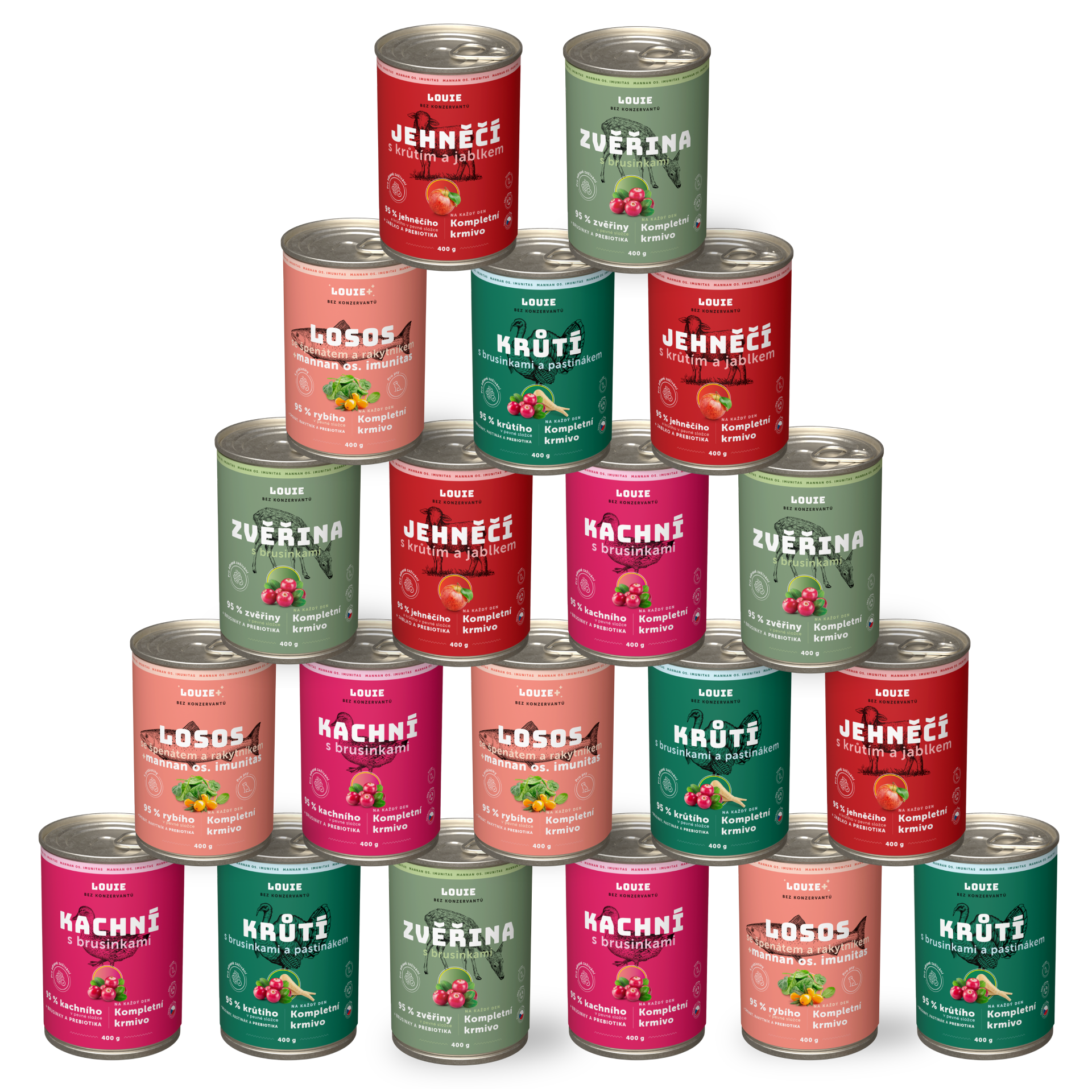 Ano, určitě! LOUIE konzervy obsahují vše, co tvůj chlupáč potřebuje pro zdravý a aktivní život. Obsahují 95 % masa v pevné složce a 5 % rostlinné složky, vitamínů a minerálů. Neobsahují žádné konzervanty, dochucovadla ani další zbytečnou chemii.