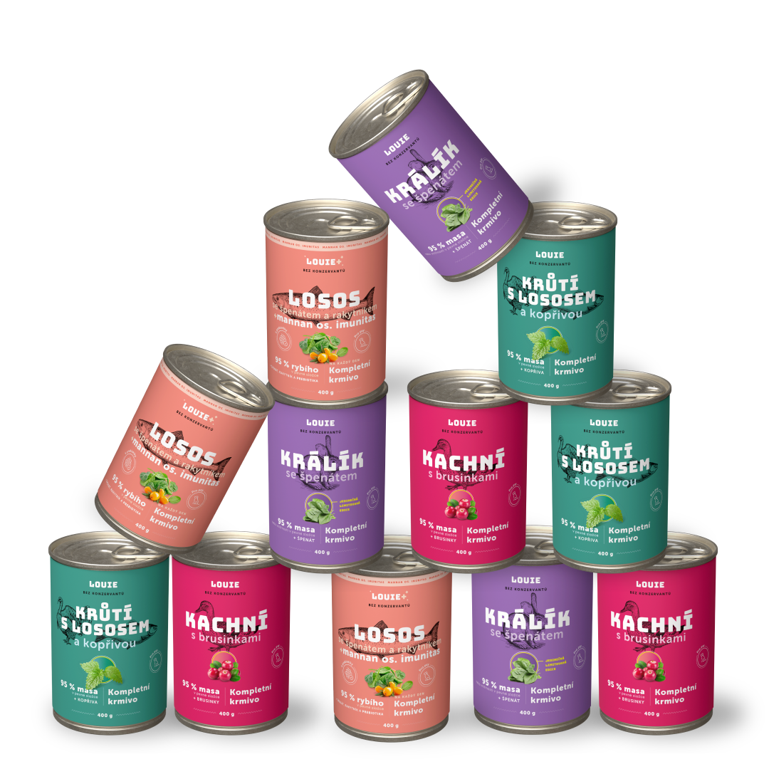 Ano, určitě! LOUIE konzervy obsahují vše, co tvůj chlupáč potřebuje pro zdravý a aktivní život. Obsahují 95 % masa v pevné složce a 5 % rostlinné složky, vitamínů a minerálů. Neobsahují žádné konzervanty, dochucovadla ani další zbytečnou chemii.