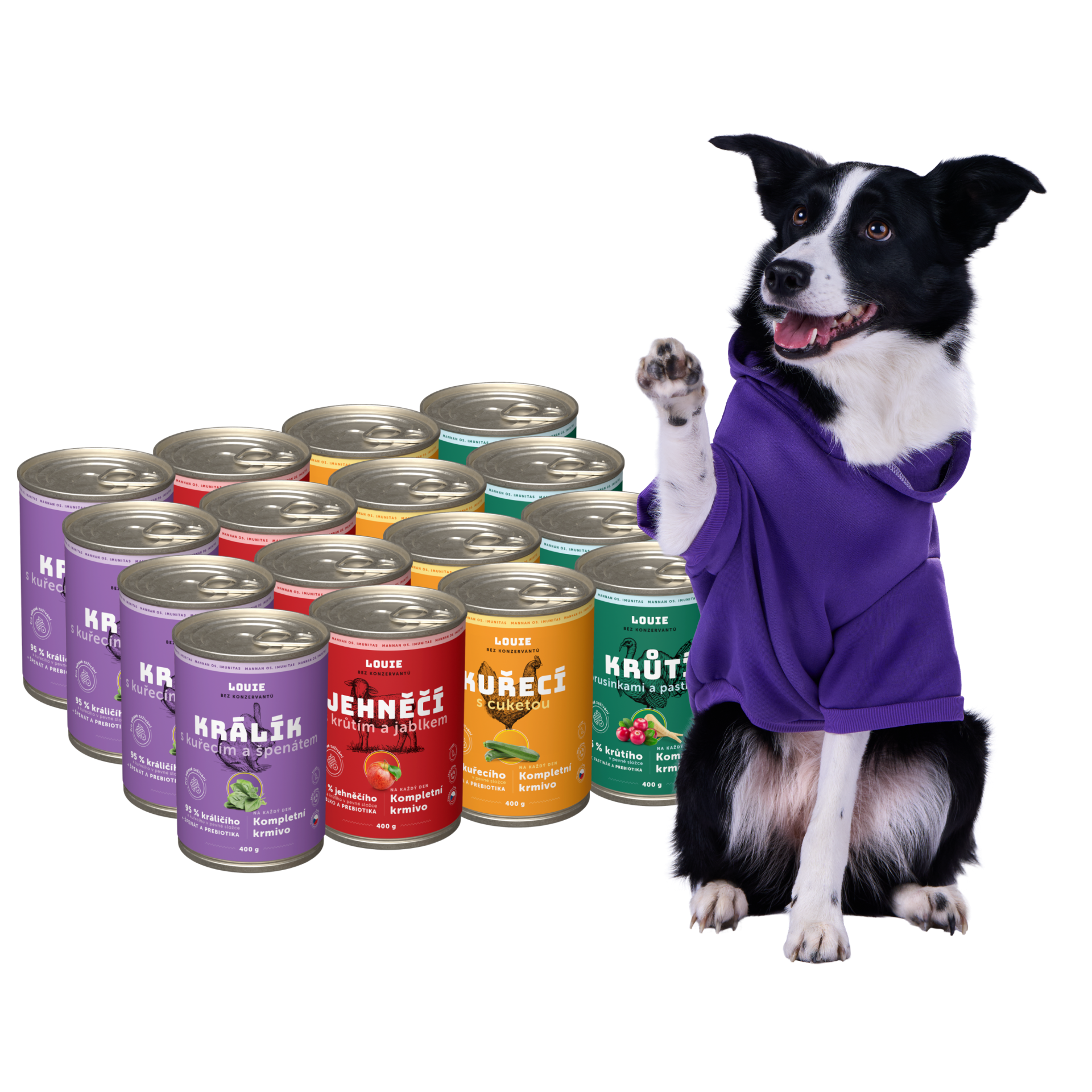 Ano, určitě! LOUIE konzervy obsahují vše, co tvůj chlupáč potřebuje pro zdravý a aktivní život. Obsahují 95 % masa v pevné složce a 5 % rostlinné složky, vitamínů a minerálů. Neobsahují žádné konzervanty, dochucovadla ani další zbytečnou chemii.
