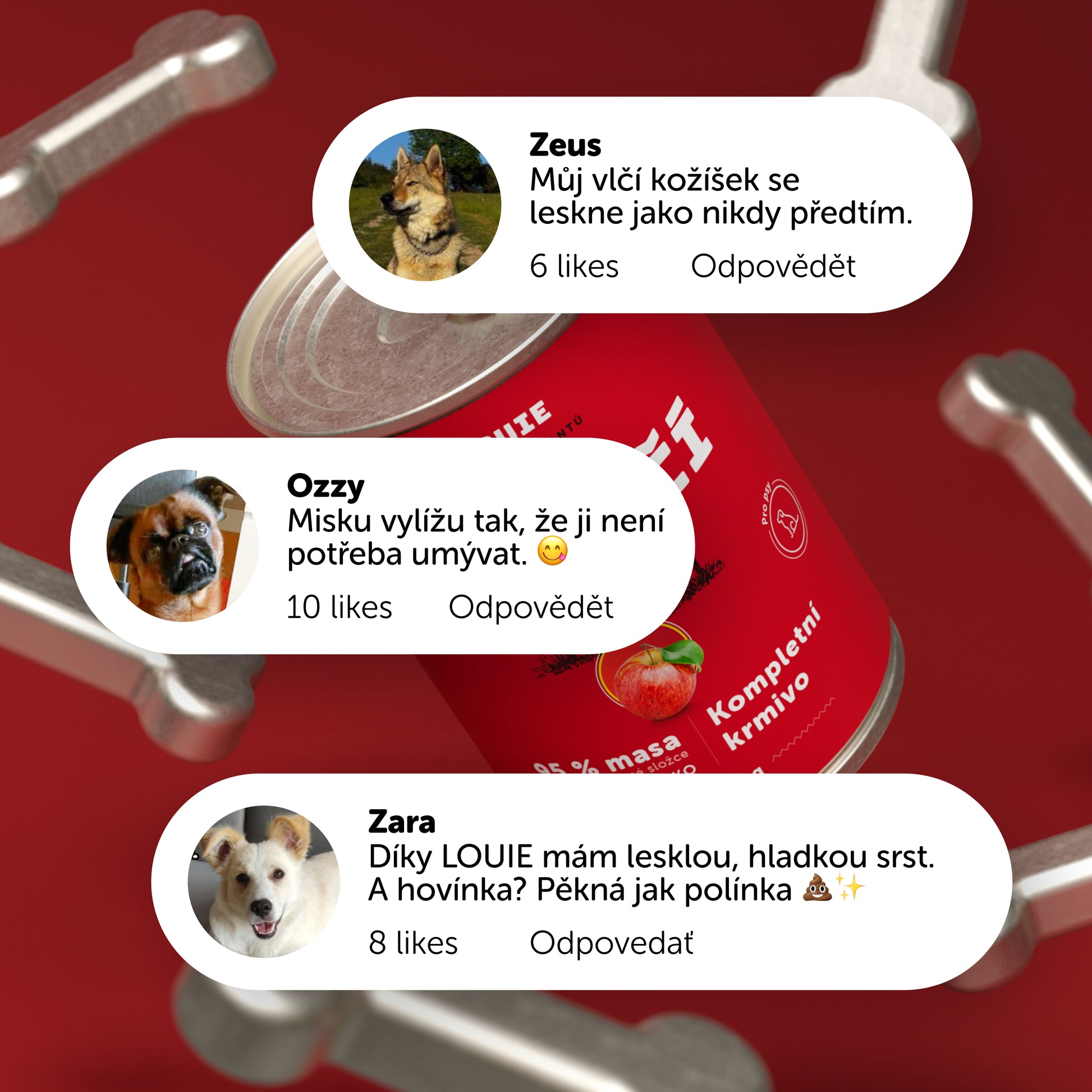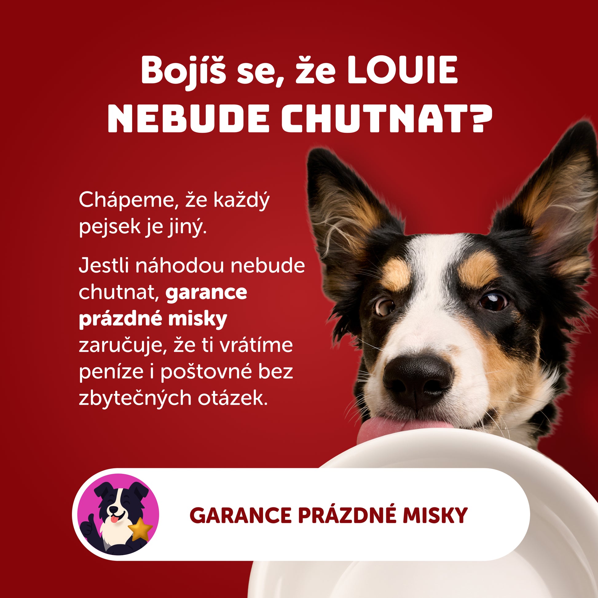 Každý pejsek má své vlastní chutě, ale konzervy LOUIE jsou připravovány z kvalitních surovin a mají přirozenou vůni i chuť, kterým většina psů neodolá. A pokud by mu konzerva opravdu nechutnala, nemusíte se bát – nabízíme Garanci prázdné misky! To znamená, že pokud pejsek krmivo odmítne, vrátíme ti peníze. Více informací najdeš zde. 😊