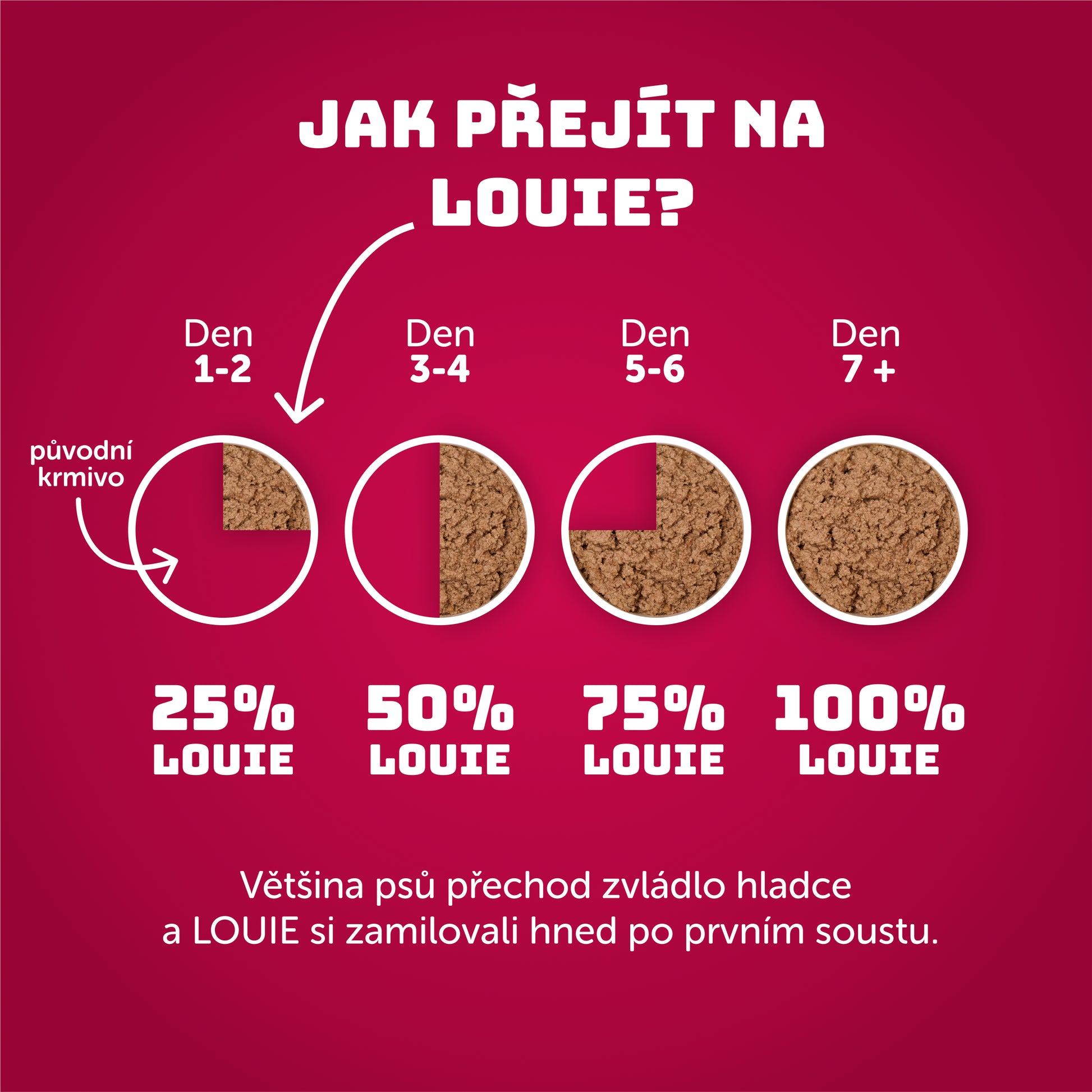 S LOUIE dávaš svému čtyřnožci vše, co potřebuje – 95 % masa v pevné složce, trochu rostlinných složek a plnou dávku živin. A ta vůně? Neodolatelná!