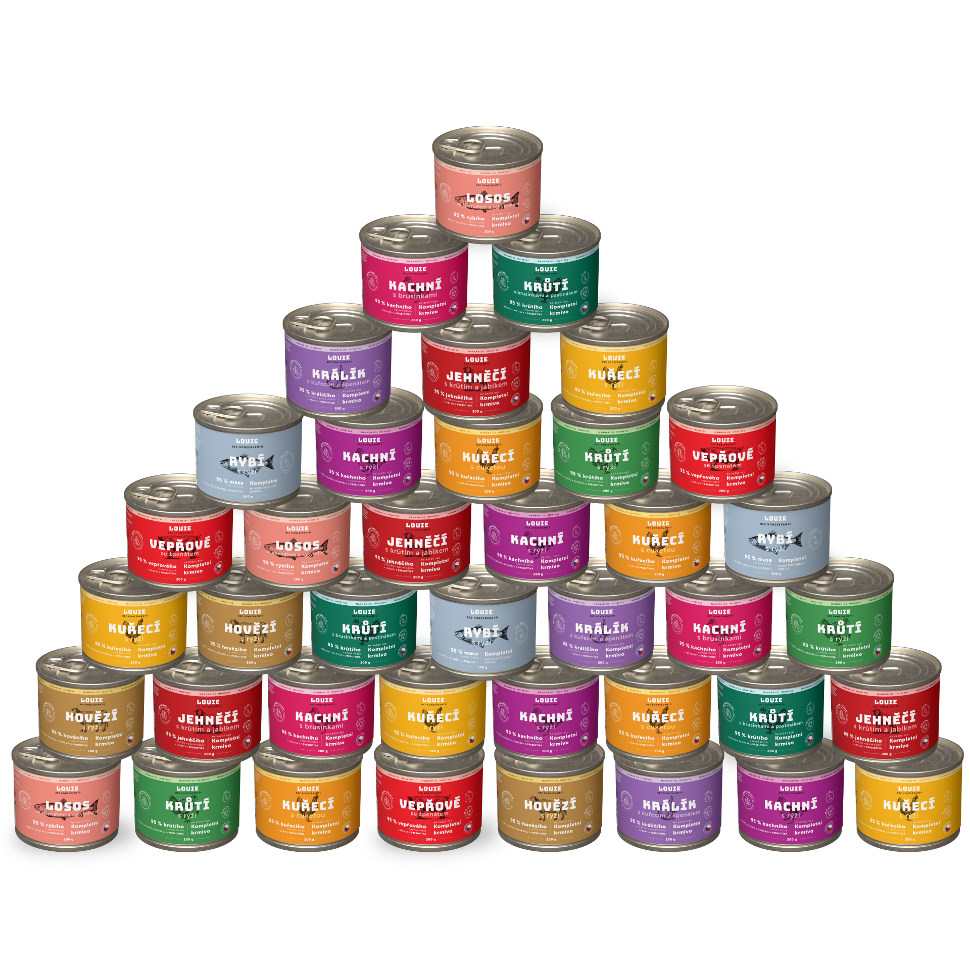 Ano, určitě! LOUIE konzervy obsahují vše, co tvůj chlupáč potřebuje pro zdravý a aktivní život. Obsahují 95 % masa v pevné složce a 5 % rostlinné složky, vitamínů a minerálů. Neobsahují žádné konzervanty, dochucovadla ani další zbytečnou chemii.