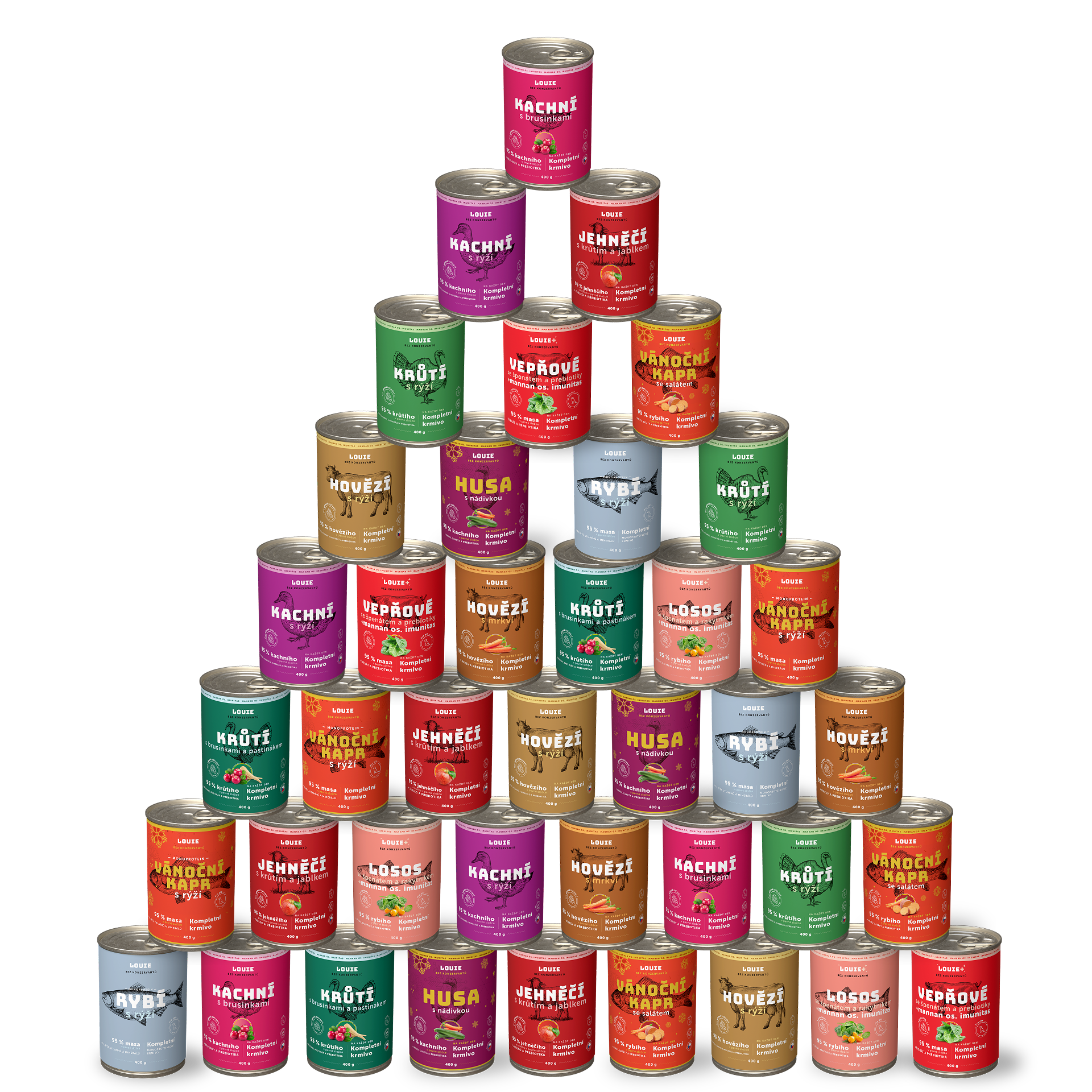 Ano, určitě! LOUIE konzervy obsahují vše, co tvůj chlupáč potřebuje pro zdravý a aktivní život. Obsahují 95 % masa v pevné složce a 5 % rostlinné složky, vitamínů a minerálů. Neobsahují žádné konzervanty, dochucovadla ani další zbytečnou chemii.