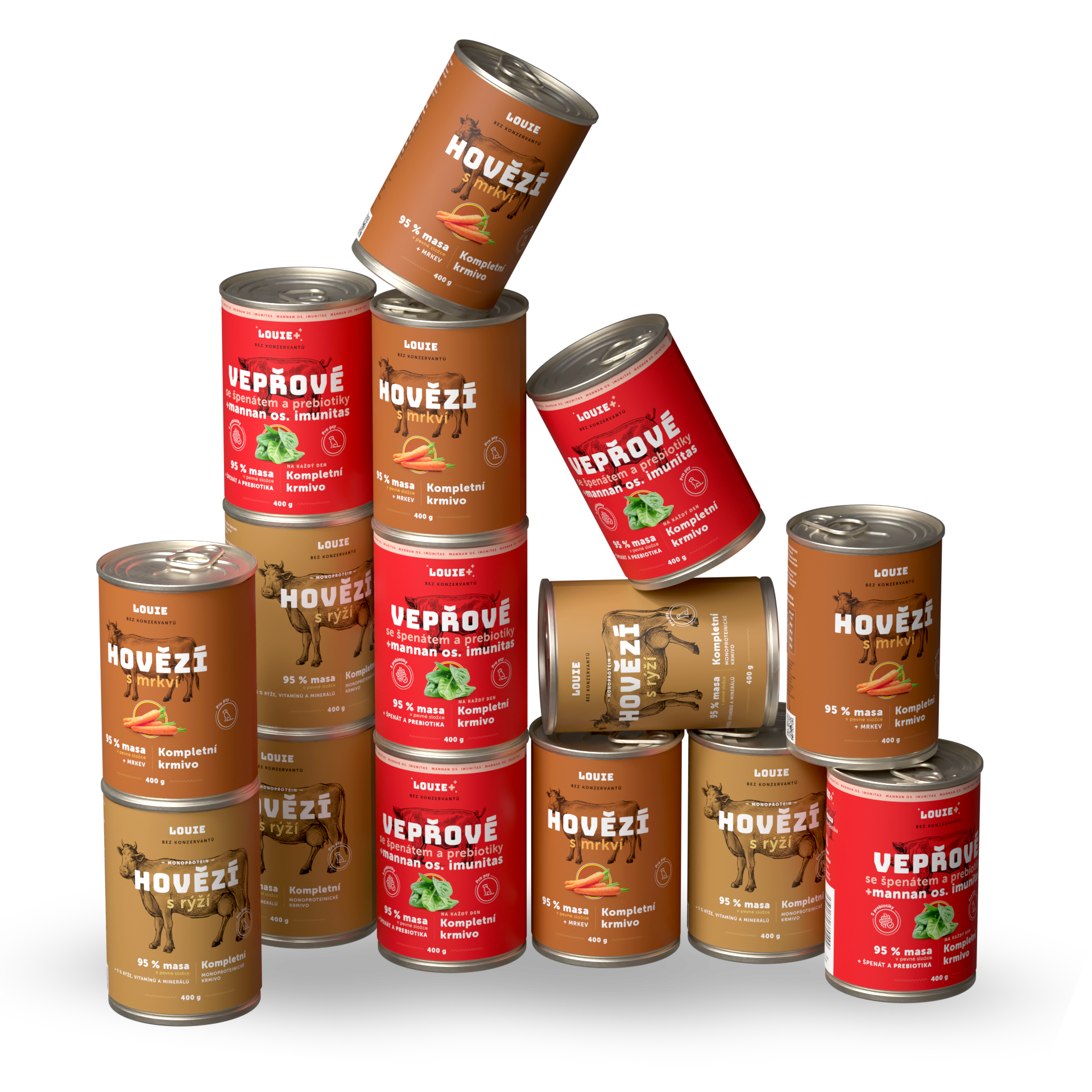 Ano, určitě! LOUIE konzervy obsahují vše, co tvůj chlupáč potřebuje pro zdravý a aktivní život. Obsahují 95 % masa v pevné složce a 5 % rostlinné složky, vitamínů a minerálů. Neobsahují žádné konzervanty, dochucovadla ani další zbytečnou chemii.